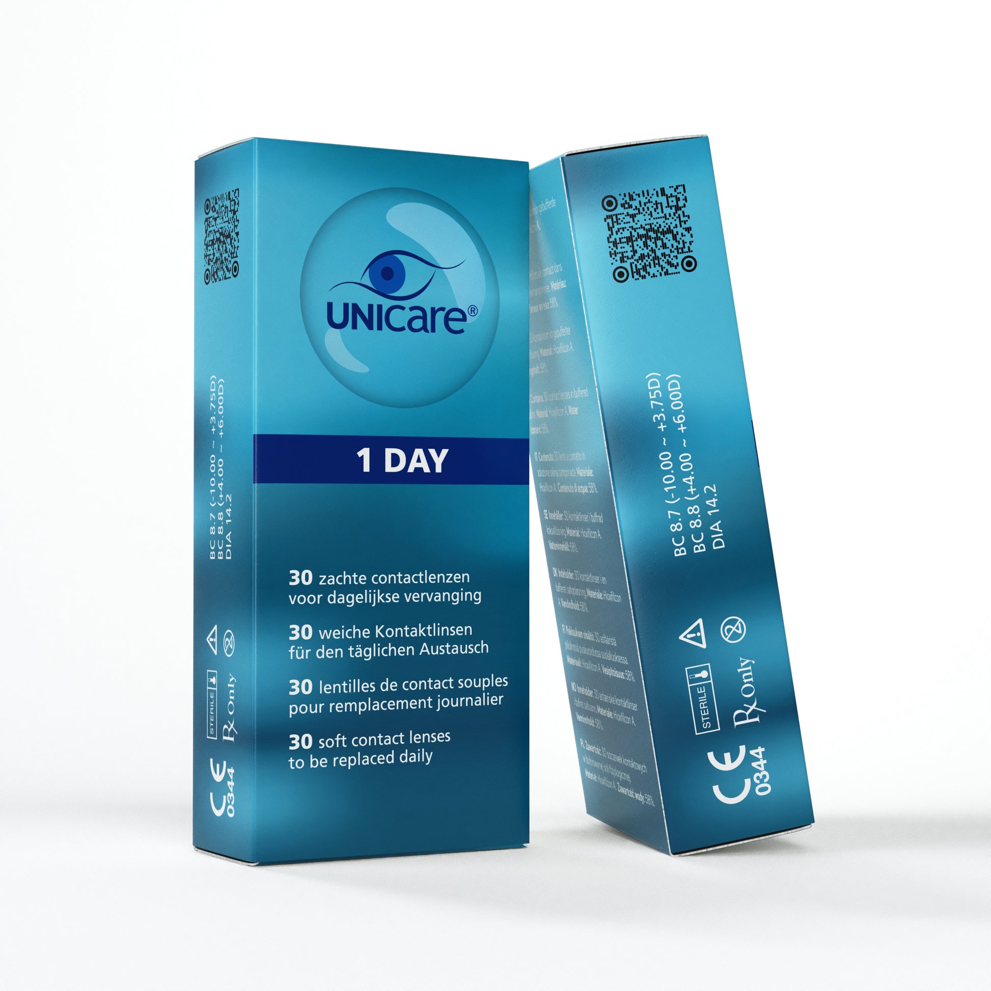 Unicare Daglenzen zijn zachte daglenzen met UV-bescherming, speciaal voor gevoelige ogen. Elke lens gebruik je één dag, dus geen onderhoud nodig.